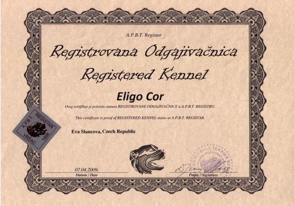 Telefon: +420 776 011 435 Zodpovědná osoba: Eligo Cor Kennel www: eligocor.kennel-apbt.com/ Mail: | Certifikát CHS: Zobrazit Certifikát ::: Hodnocení: 54 bodů ze 100 |