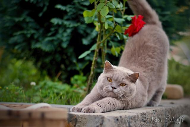 O plemeni:Britská krátkosrstá kočka je plemeno kočky domácí vyšlechtěné kolem roku 1900 ve Velké Británii. Byla vyšlechtěna křížením perských koček a domácích krátkostrstých koček s mohutnou stavbou těla. Nejprve byla chována pouze v modré variantě, později se objevily další barevné varianty a v současnosti se chová ve všech možných barevných variantách. Britská krátkosrstá kočka je jedním z nejoblíbenějších plemen čistokrevných koček zejména pro svou přítulnou povahu, hebkou srst a pěknou tělesnou stavbu