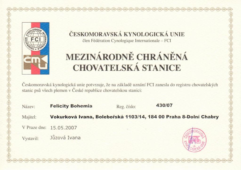 Reg. číslo CHS: 430/07 Certifikát CHS:Zobrazit Certifikát ::: Plánujeme vrh: 16.05.2014 Hodnocení: 76 bodů ze 100