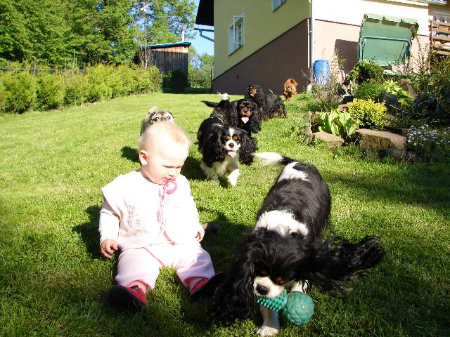 O nás:První fenku jsme si pořídili v roce 2001 a nadchla nás úžasná povaha kavalírků, že v současné době máme 4 fenečky (2x trikolor, ruby, black and tan) a pejska (BT).