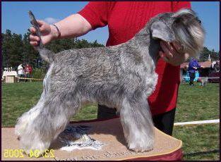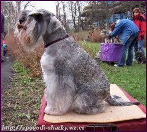 Malý,silný,spíše podsaditý než štíhlý,elegantní zmenšený dokonalý obraz knírače,bez nedostatků provázejících trpasličí vzhled.
