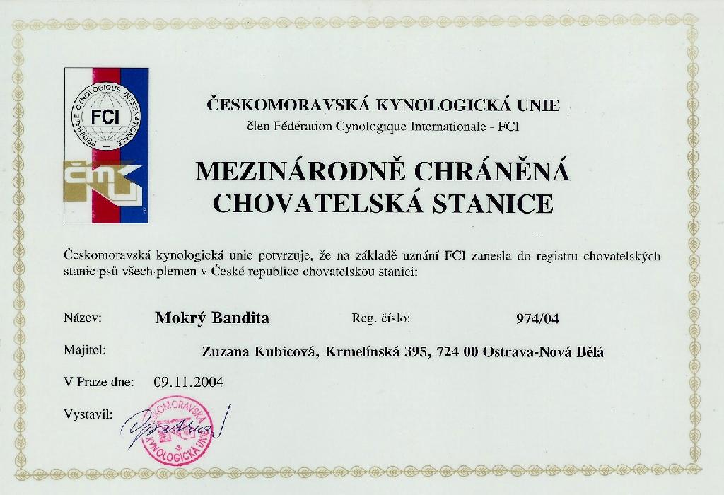 Adresa: Krmelínská 395 , Ostrava 24 , 72400 , Česká Republika Telefon:+420604388883 Zodpovědná osoba: Zuzana Kubicová www: www.czechkennel.com Mail: