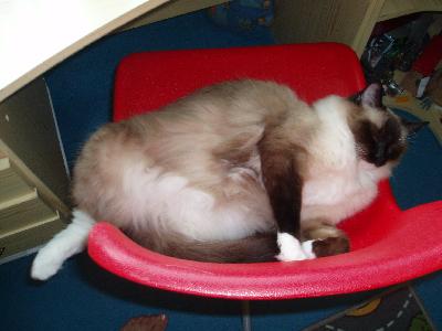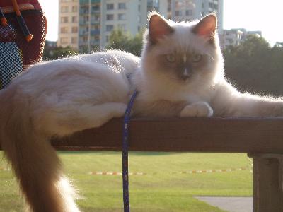O plemeni:Ragdoll je velká a těžká kočka,proslulá zejména svou klidnou povahou.Má polodlouhou srst jemné struktury.Barvy a odznaky se vyvíjejí pomalu často 2-4 roky.Jsou dobře osvalené a hmotností předstihují ostatní plemena koček,ale je to plemeno velmi dobromyslné.Snadno se vycvičí pomocí odměny,může i aportovat.Nejkrásnější na ragdollovi jsou jeho překrásné modré oči.