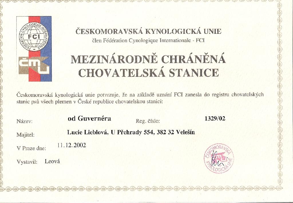 Adresa: U Přehrady 554, 382 32 Velešín Telefon: +420774231472 Zodpovědná osoba: Lucie Lieblová www: www.odguvernera.cz Mail: | Reg. číslo CHS: 1329/02 Certifikát CHS: Zobrazit Certifikát ::: Plánujeme vrh: 01.01.1970 Hodnocení: 82 bodů ze 100 |