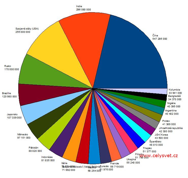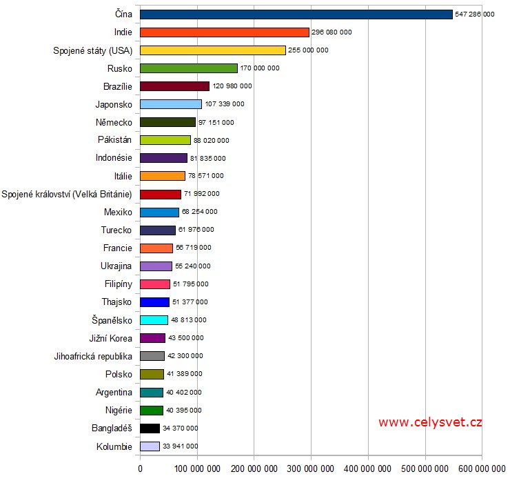 2. | Čína ::: | 547 286 000 telefonů | Vývoj : |