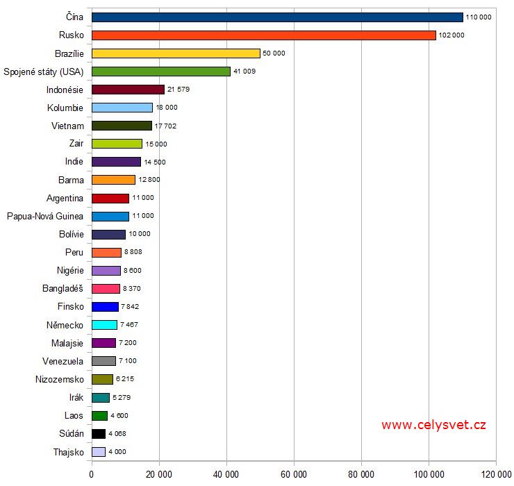 Vodní cesty. Pořadí států